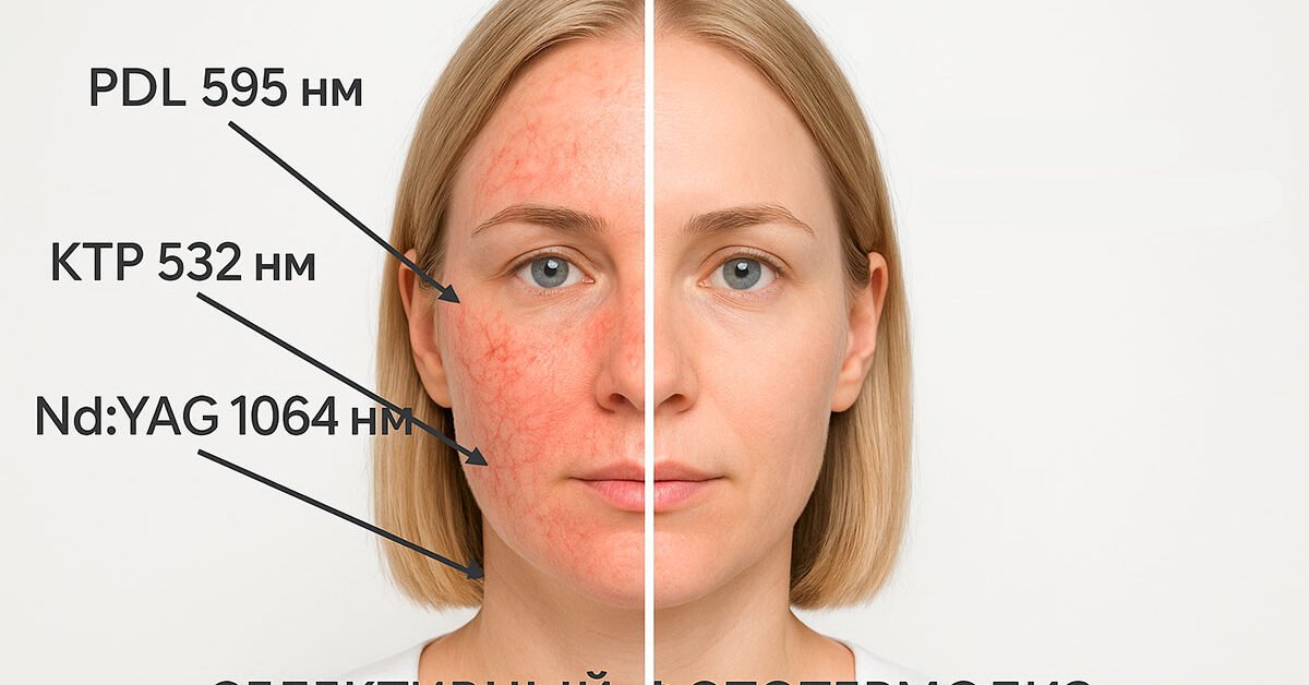 Лазер распознаёт участки с выраженным сосудистым компонентом и работает адресно по ним, уменьшая визуальную яркость «красного» на фоне без тотальной «перекраски».