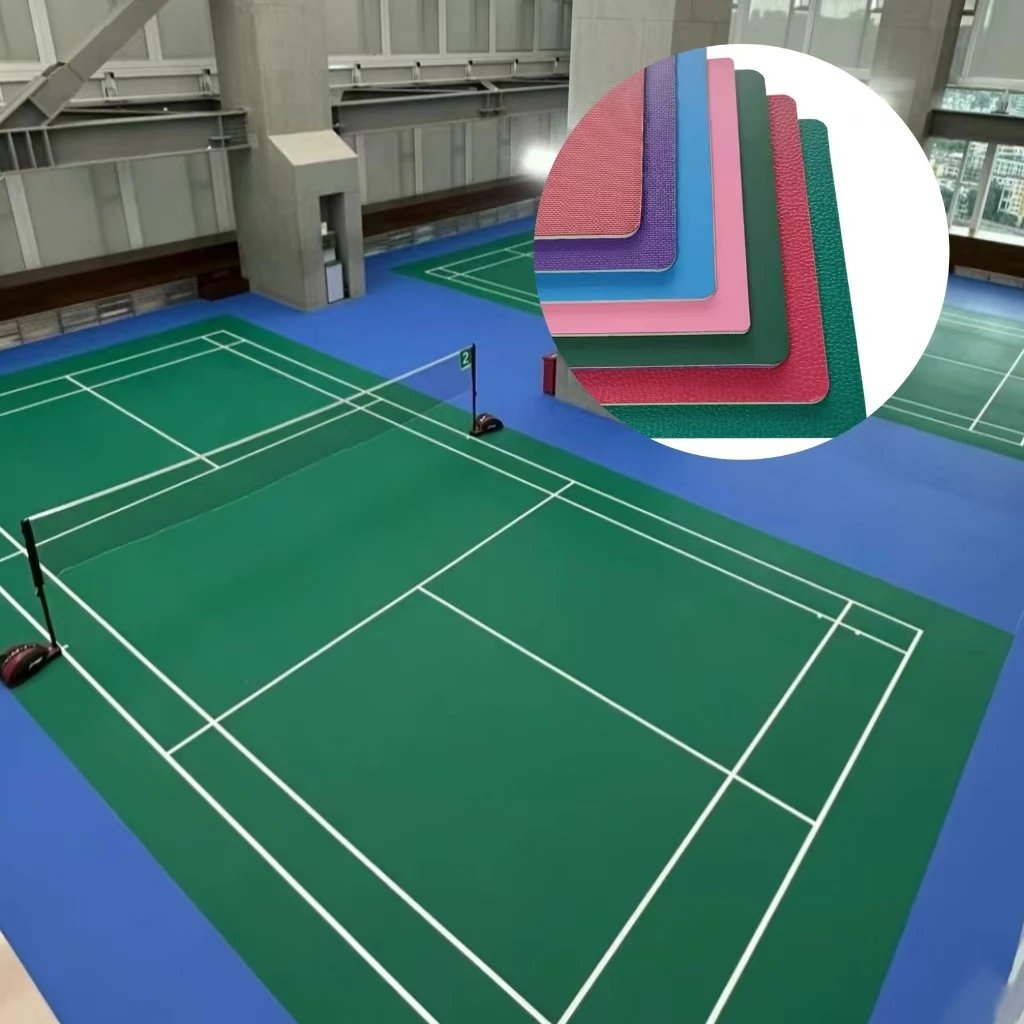 4.5/5/6/8mm Indoor Vinyl Badminton Court PVC Sports Flooring Pickleball/volleyball Court Green Blue Gray