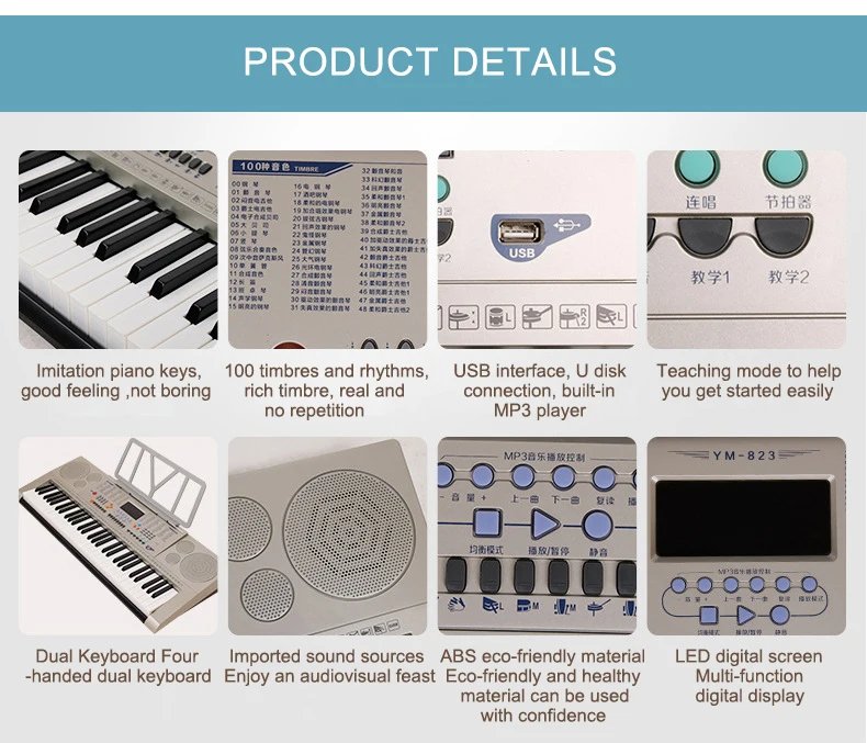 61 Key Electric Organ Keyboard Piano for Student Musical Instrument Music Keyboard₹68.15 - 61 Key Electric Organ Keyboard Piano for Student Musical Instrument Music Keyboard quantity + Add to basket SKU: 1600324229243 Category: Shoppes: MUSIC Additional information Additional information Weight 1.650 kg Related products LeGemCharr Digital Piano 88 Key Hammer Action Keyboards Music Electronic Piano Studio Keyboard Professional Piano Usb ₹140.15 Select options This product has multiple variants. The options may be chosen on the product page High End Wholesale Electronic Keyboard Piano and Other Musical Instruments ₹500.15 Select options This product has multiple variants. The options may be chosen on the product page Authentic Korgs PA4X 61 Key Keyboard PA4X61 Workstation ₹375.15 Select options This product has multiple variants. The options may be chosen on the product page Best Quality 28 Strings Musical Instrument Wooden Material Made Irish Harp in Different Sizes New Customized Logo Black Harp ₹201.15 Select options This product has multiple variants. The options may be chosen on the product page