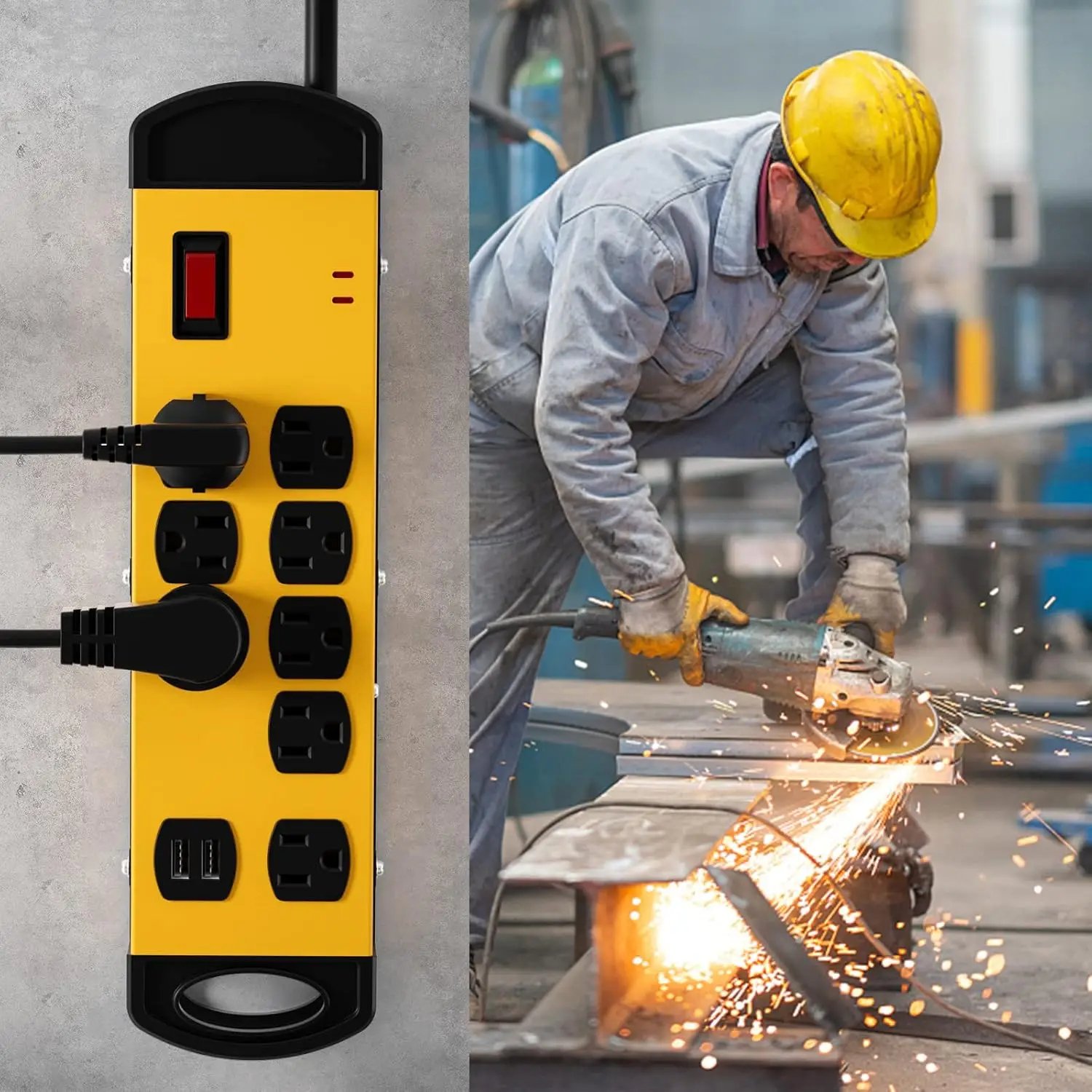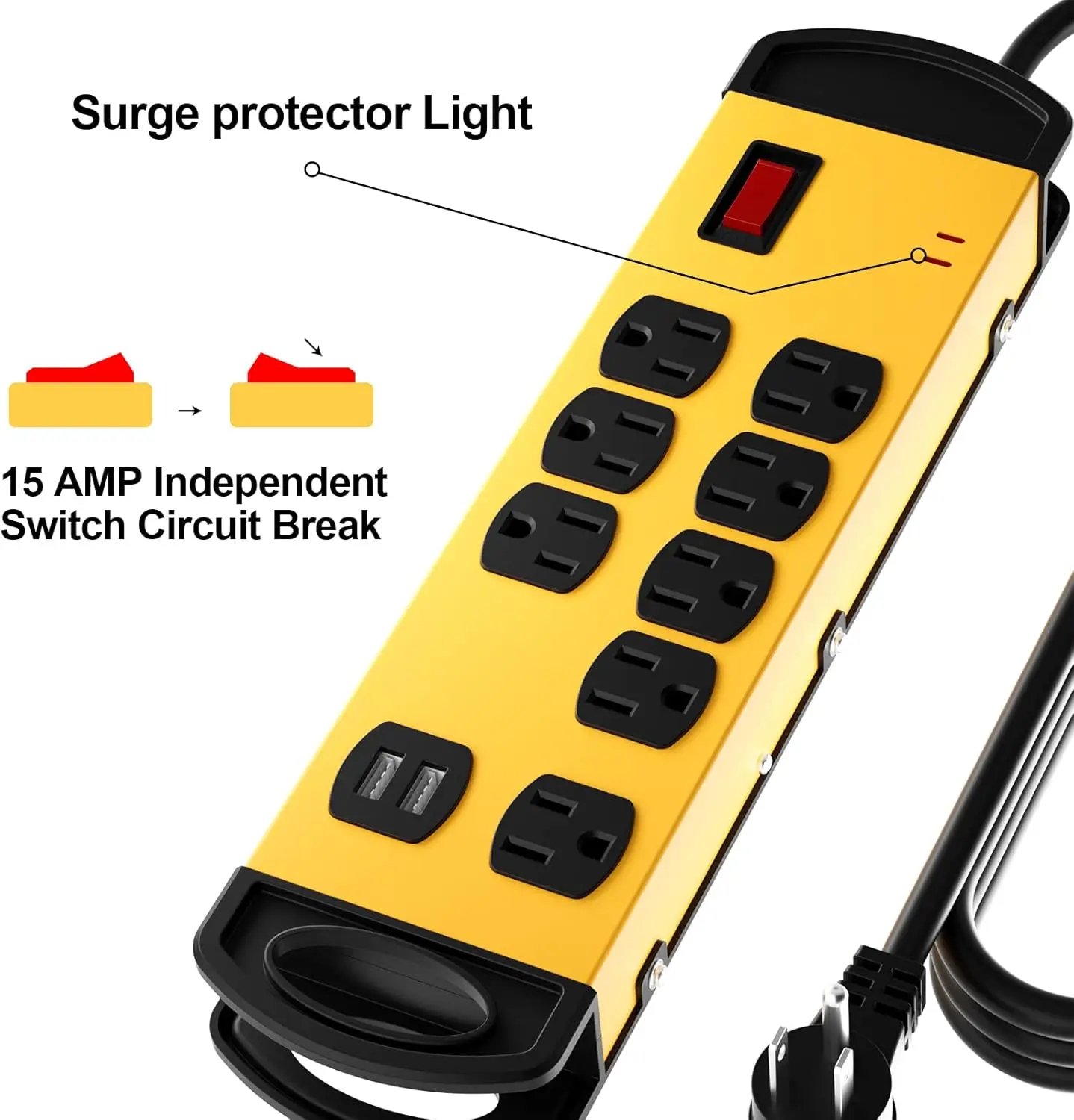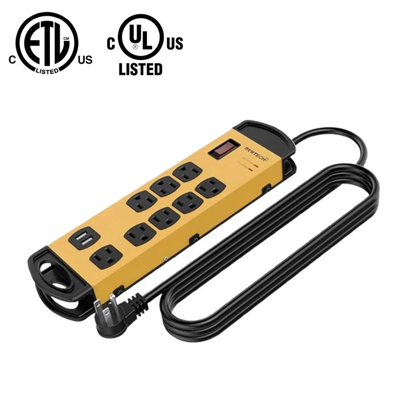8 Outlets Mountable Heavy Duty Surge Protector Metal Electrical Power Strip with 2 USB Charging Ports