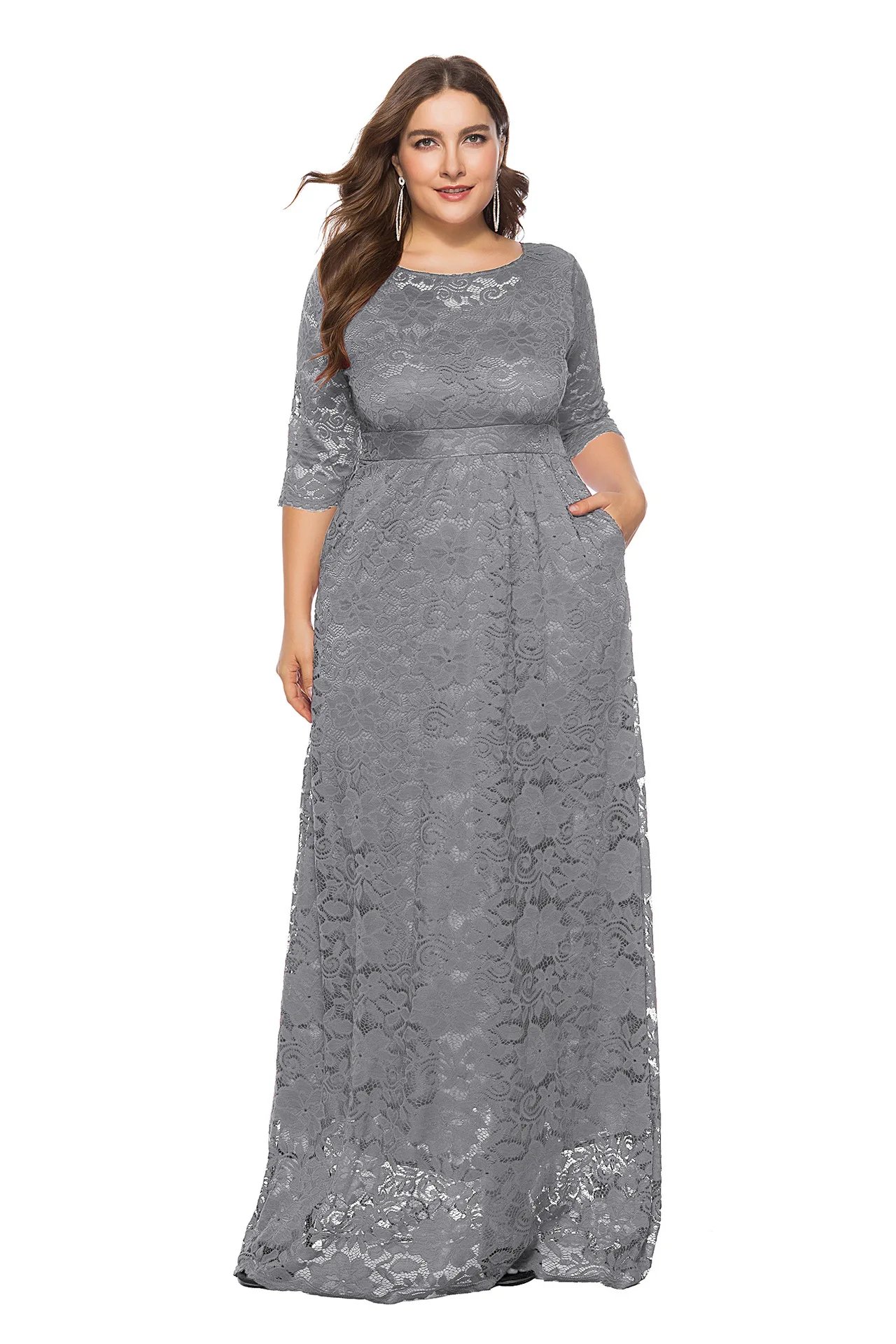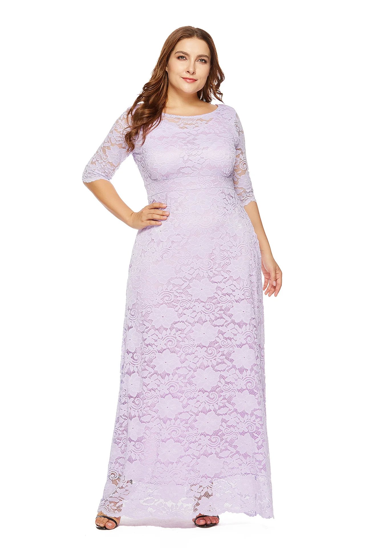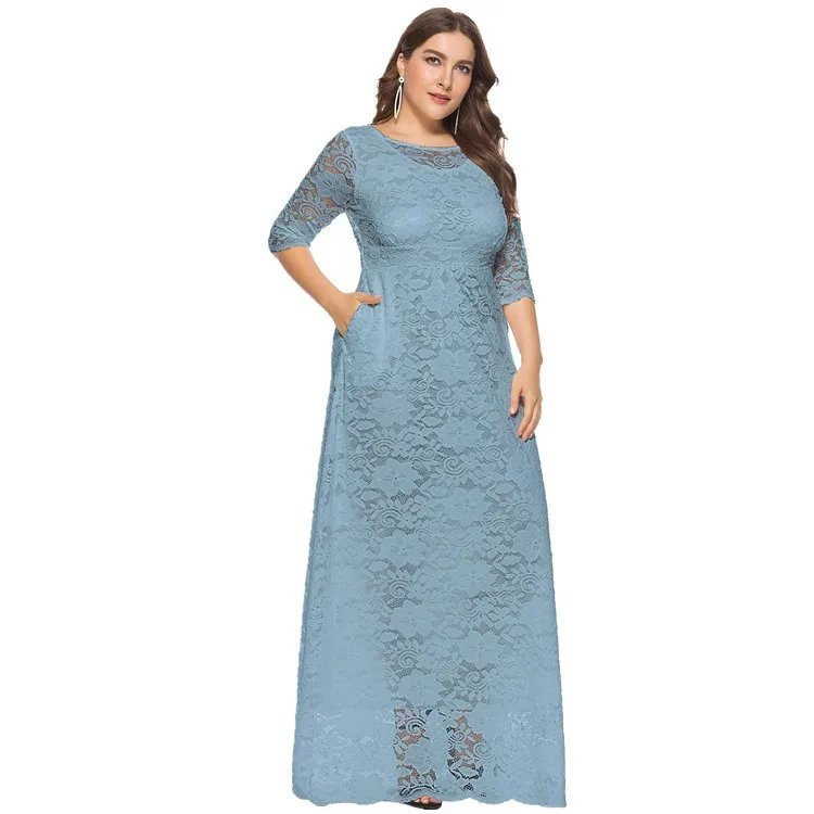 BH884 Women Plus Size Elegant Lace Party Dinner Dress Evening Gown