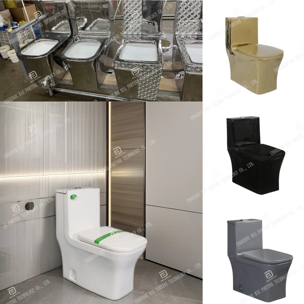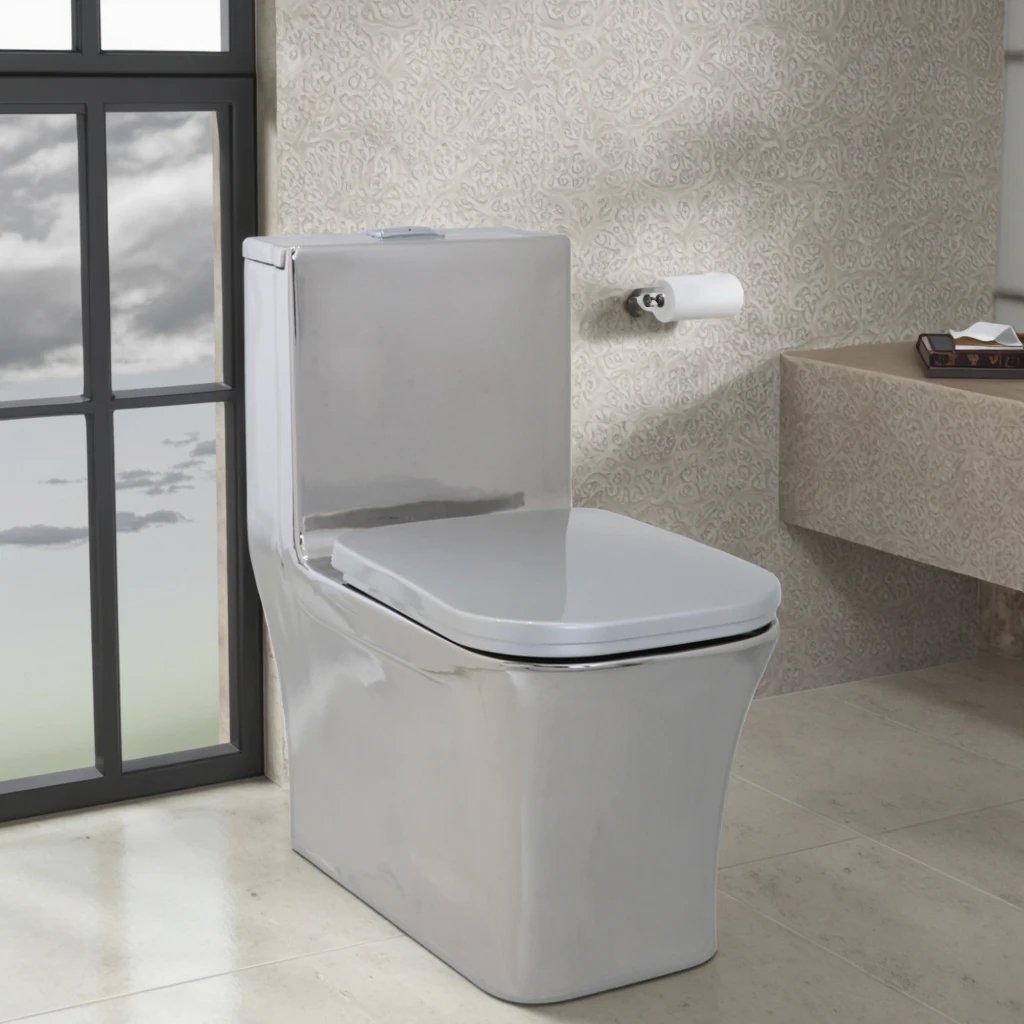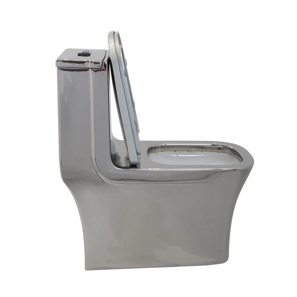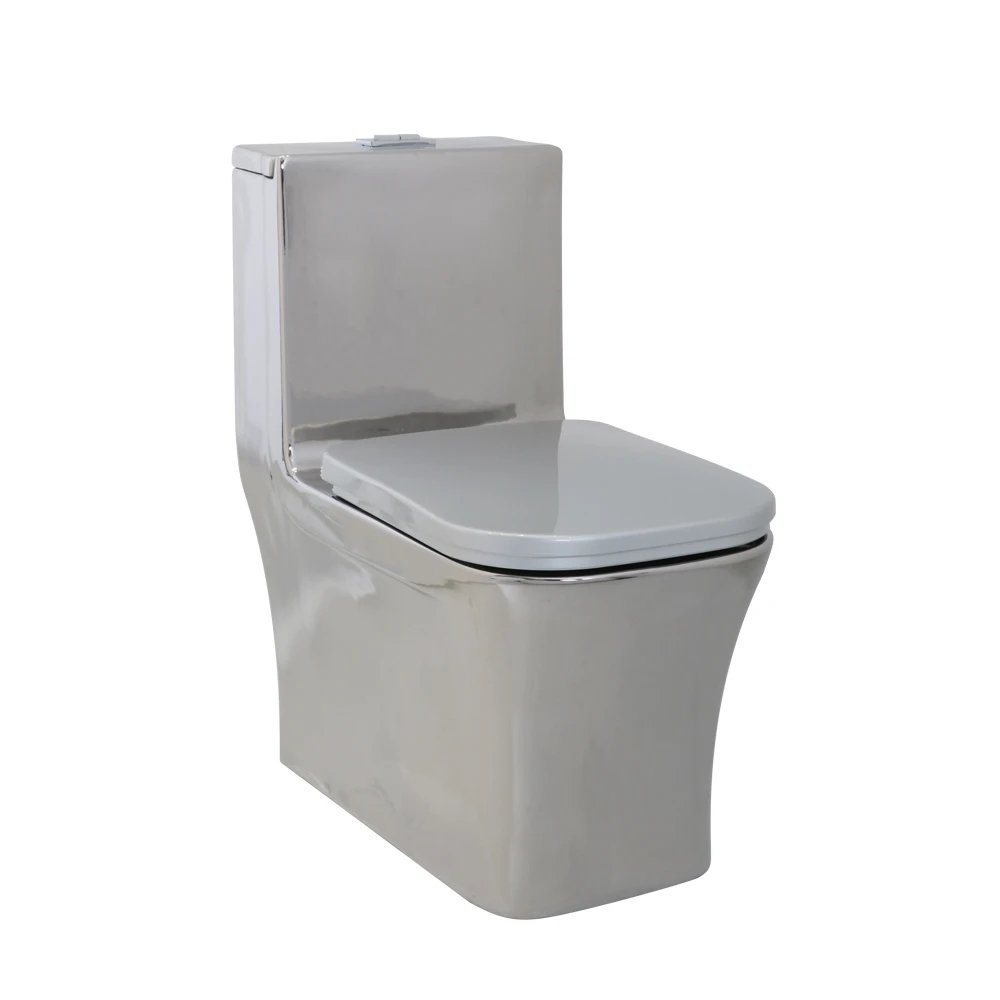 Contemporary Porcelain Washdown Toilets Commode Bathroom Water Closet Ceramic Silver Square One Piece Toilet for Hotel