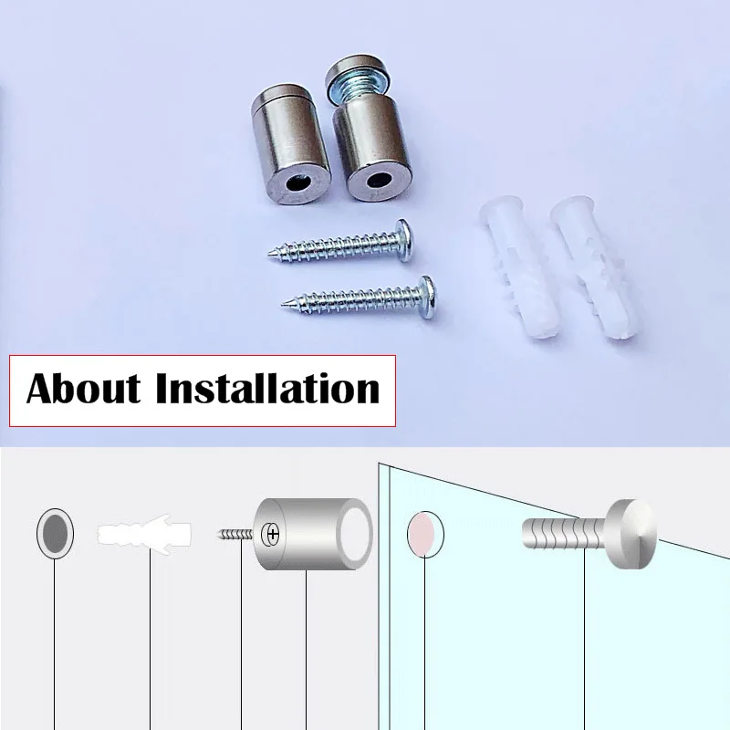 The sign is pri-drilled with holes, and installed with screws (the signs comes with stainless steel stand-offs, wall plugs and screws)