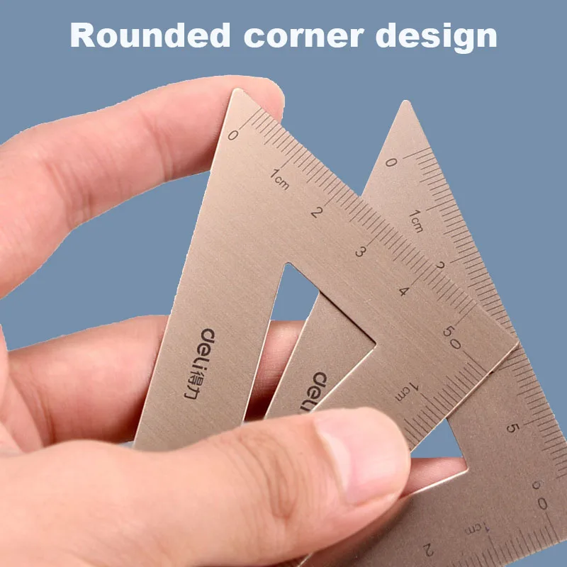 Deli Metal Ruler School Drawing Measuring Triangle Ruler for Kids Learning Angle Straight Ruler Set Office Accessories Supplies