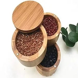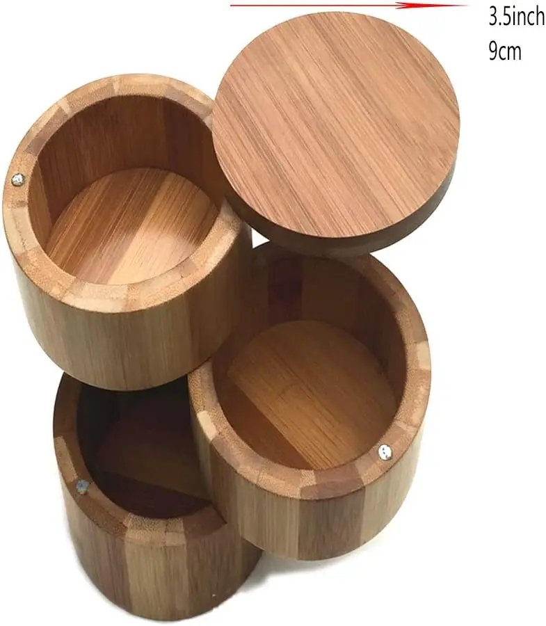 Elegant 3-Tier Wooden Spice Holder with Shaker Lid Bamboo Jar Salt Spices Storage Container for Kitchen Use Herb & Spice Tools