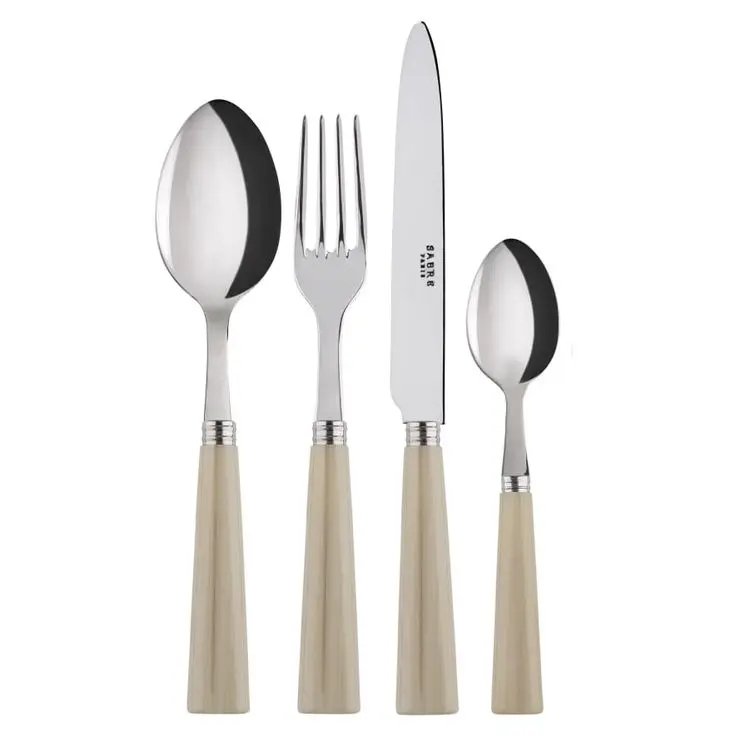 Elegant Stainless Steel Cutlery Set with Cream-Resin Handle Eco-Friendly Feature for a Sophisticated Dining Experience