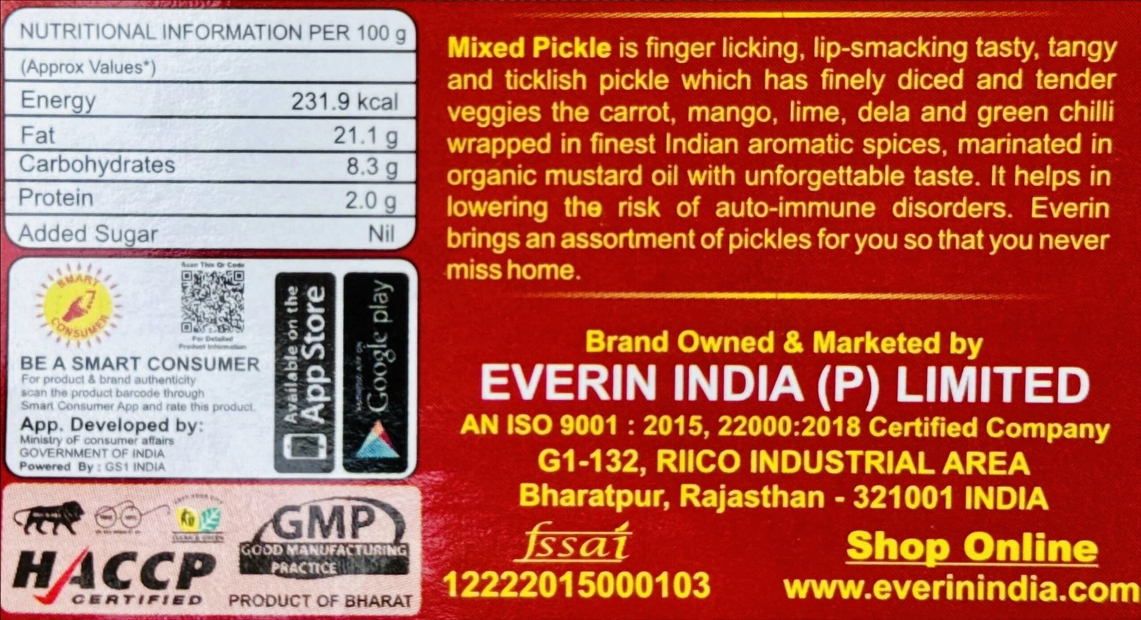 EVERIN 500g Mixed Pickles Tasty Tangy