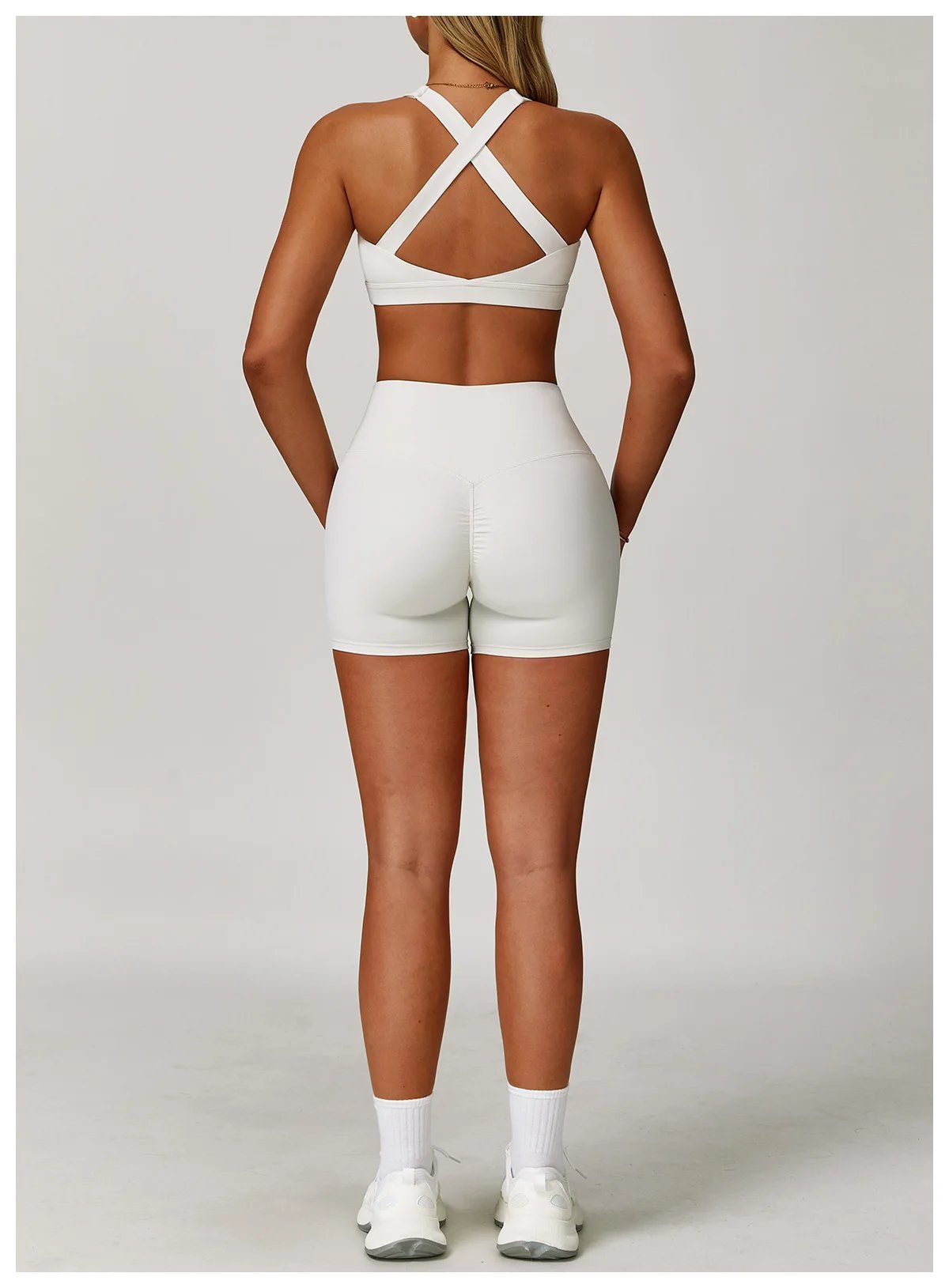 | Color | Black shorts, White shorts, White leggings, Black leggings, White bra, Black bra |