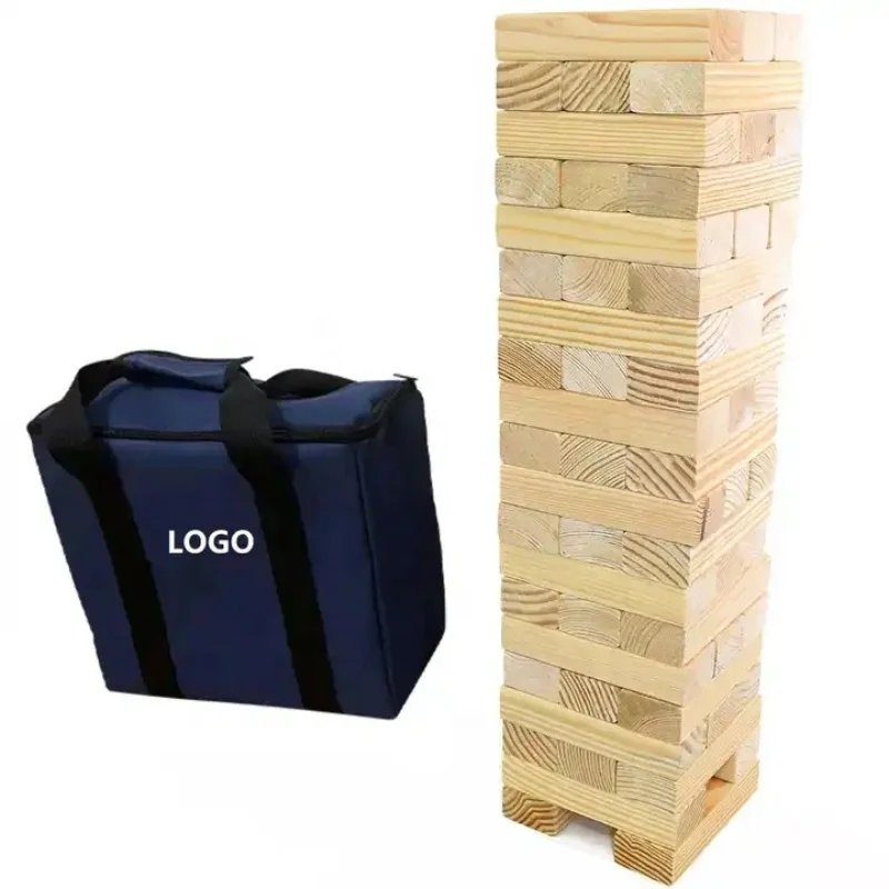 Giant Wooden Building Blocks Tumbling Tower Stacking Game Set with Carry Bag