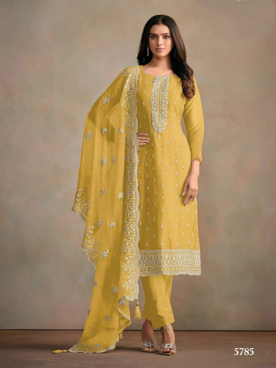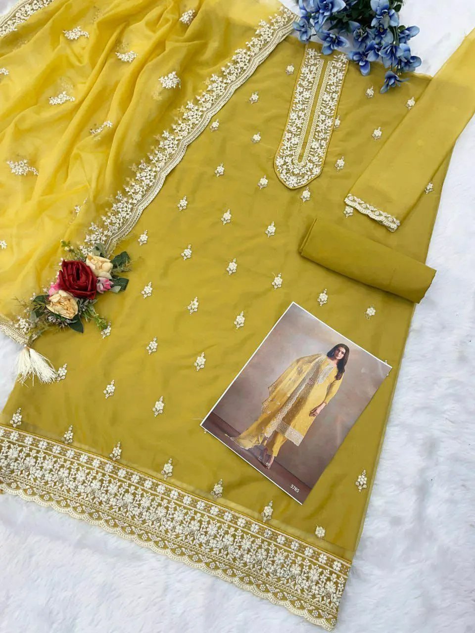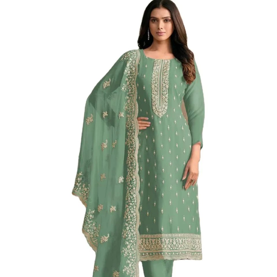 Heavy Organza Silk With Beautiful Neck Design Straight Cut Border Knee Length Fancy Kurti& Bottom With Lace Border Dupatta Set