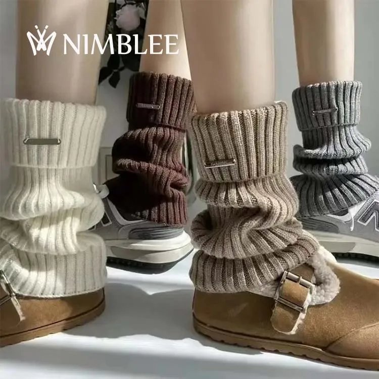 High Quality Women's Over-The-Calf Sloch Sock Custom Metal Label Winter Warm Knit Leg Warmers Thick Womens Socks