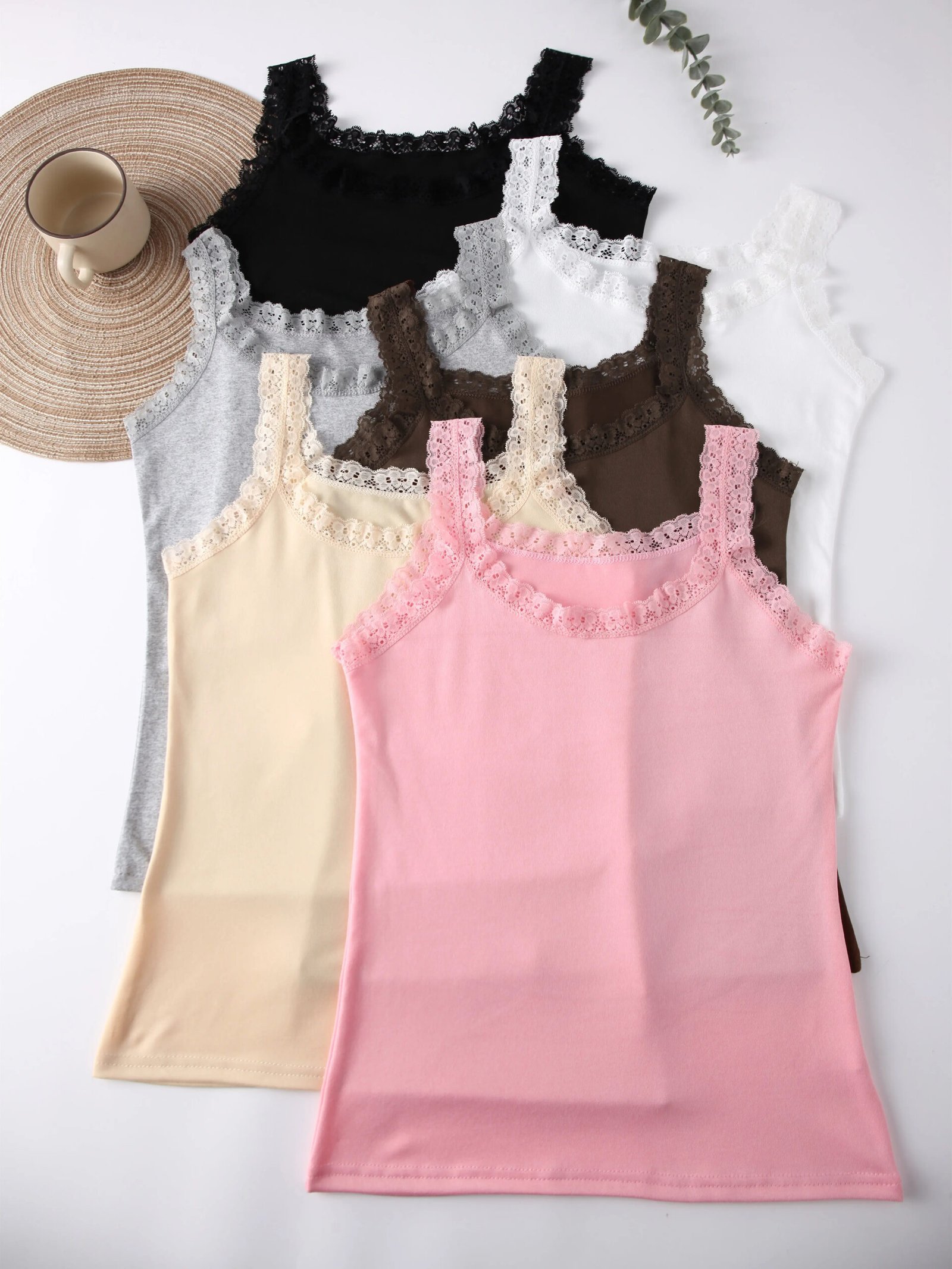 IBGUH Women's Colorful Summer Tank Tops Hot Selling Lace Sleeveless Camisole Knitted Nylon Soft and Comfortable