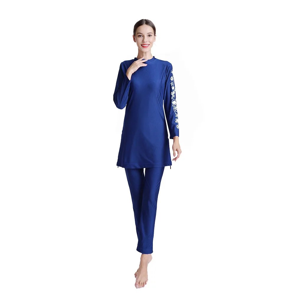 Long Sleeves 3pcs Burkini Bra Pad Muslim Swimsuits for Women Girls Plus Size Full Coverage Islamic Modest Bathing Suits Print