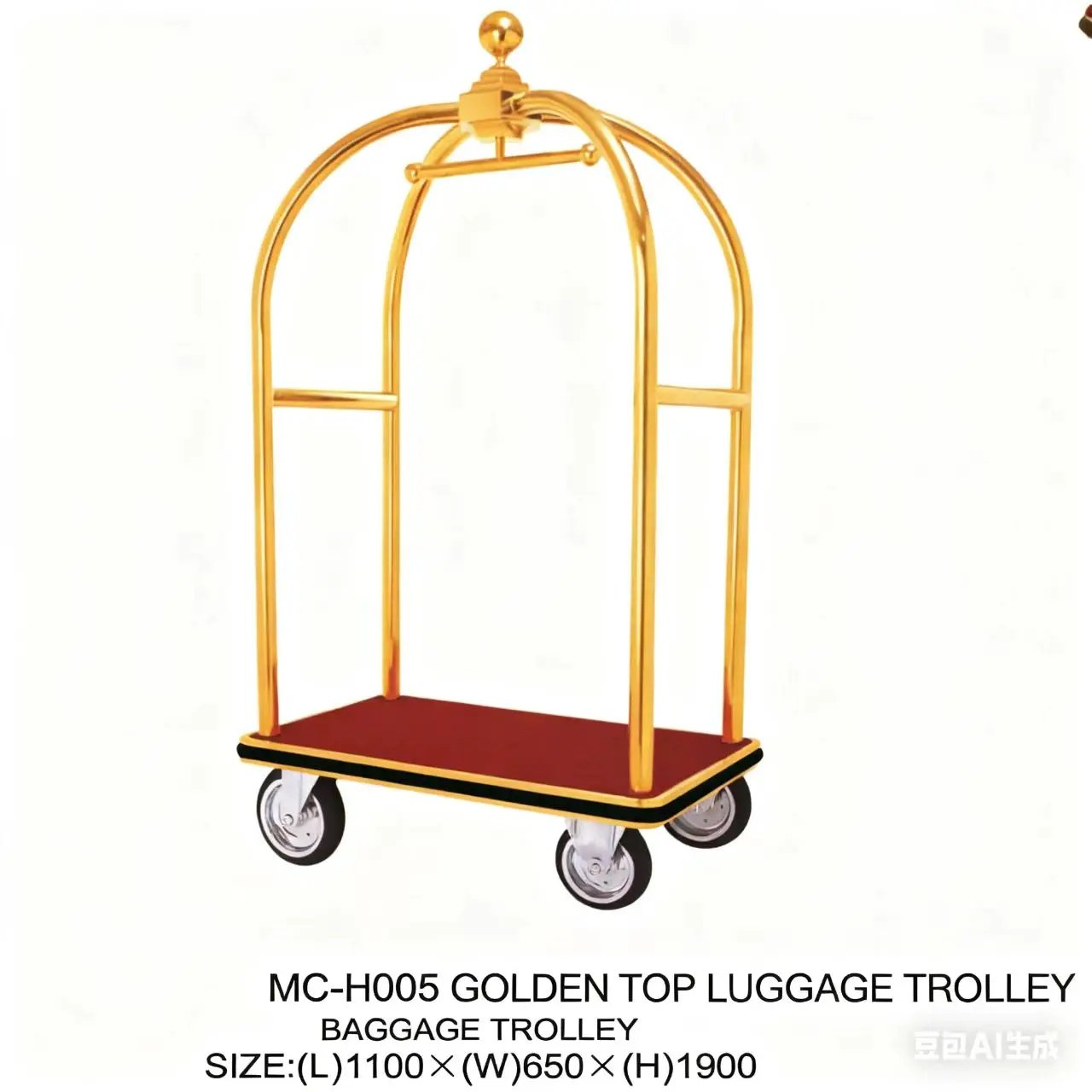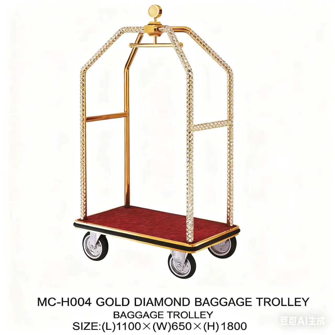 Luxury Gold Stainless Steel Hotel Luggage Cart 5 Star Luggage Trolley with Stylish Design