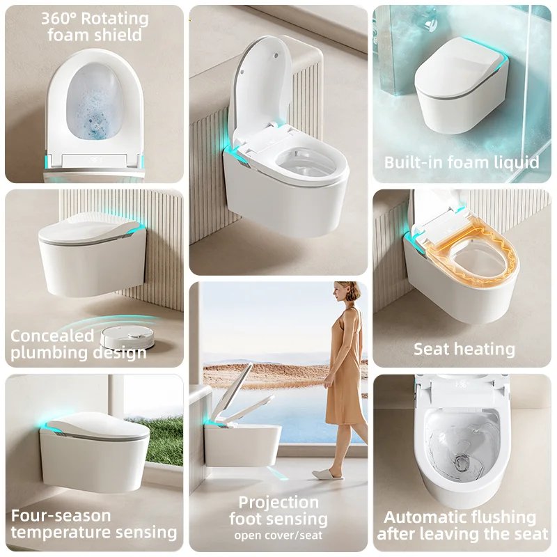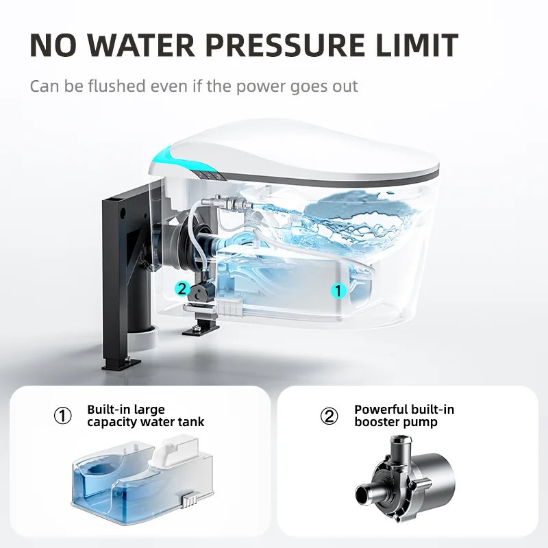 No Water Press Limited Wall Hung Automatic Bidet Concealed Water Closet Sanitary Wares Smart Toilet With Self Cleaning