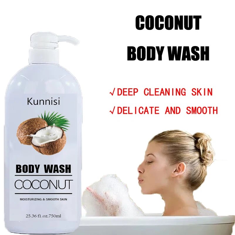 OEM ODM Private Label Coconut Body Wash Organic Natural Liquid Bath Soap Niacinamide Refreshing Exfoliating Scrub Travel Foam