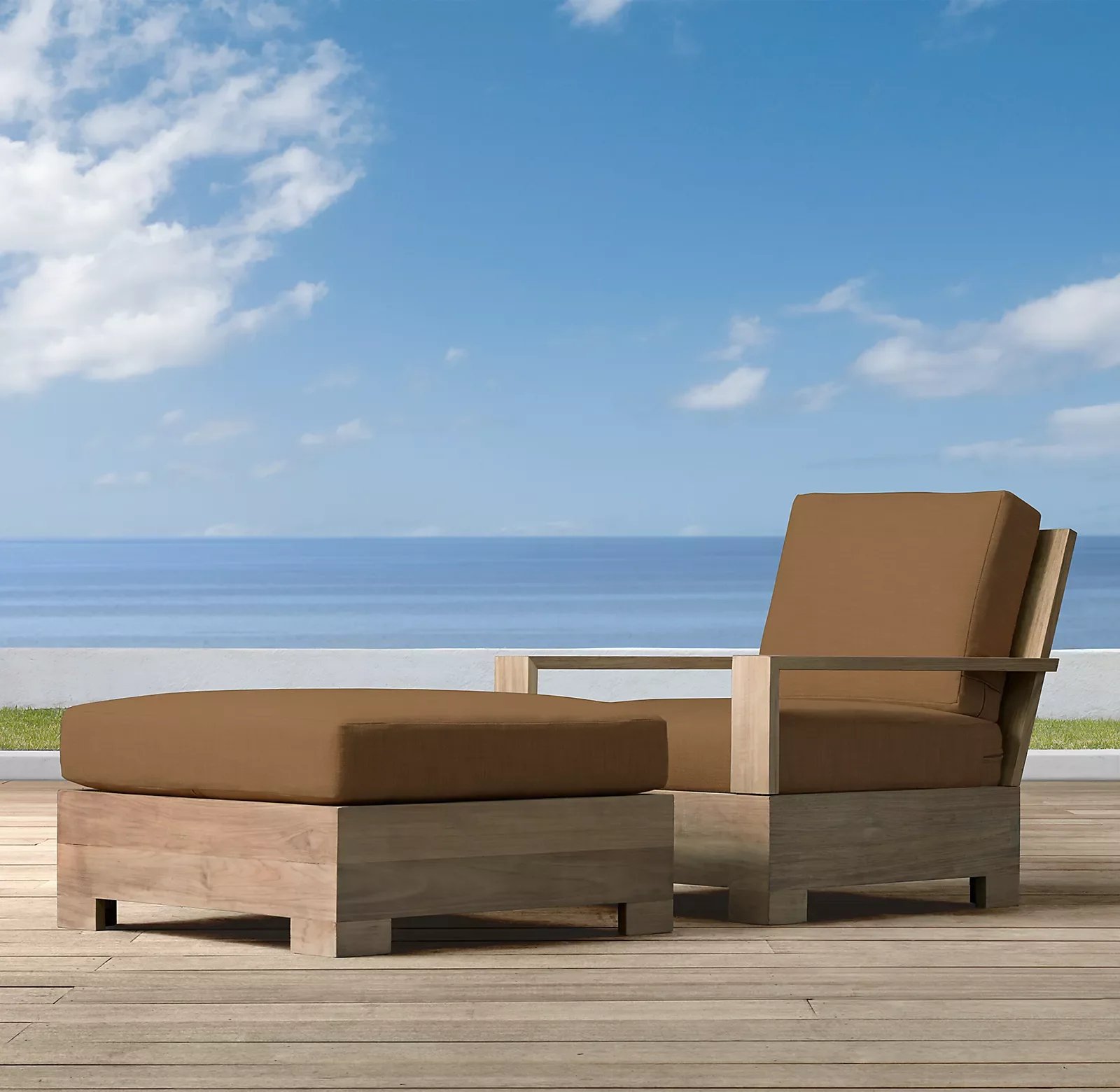 Outdoor Teak Wooden Ottoman and Single Seat Sofa Set