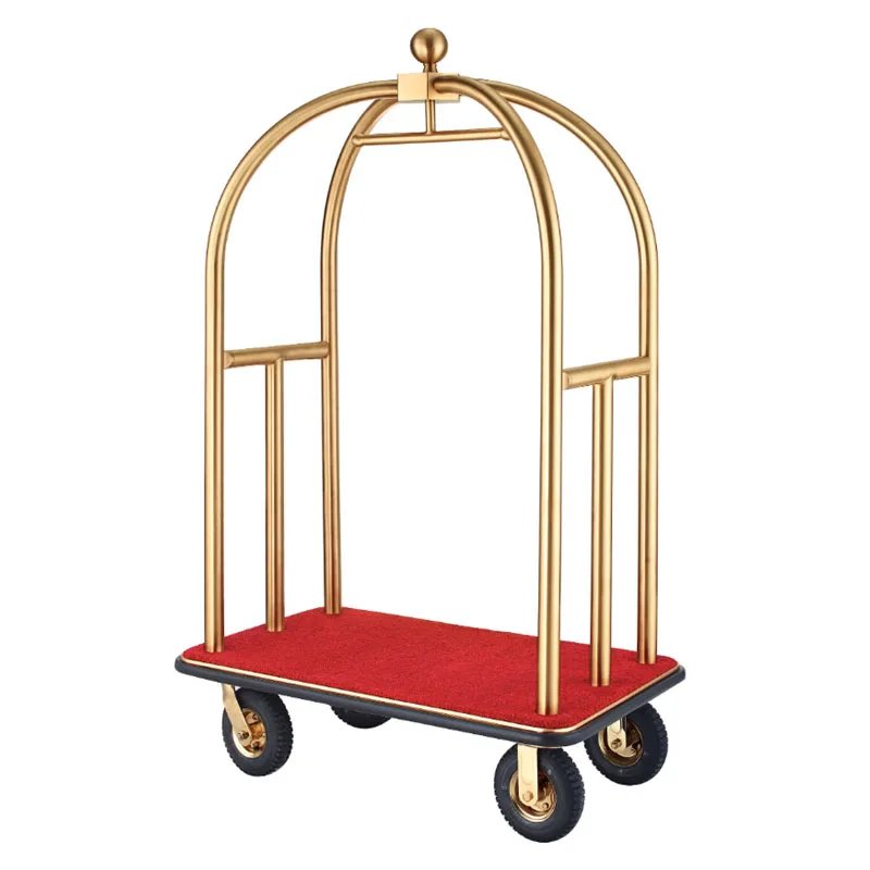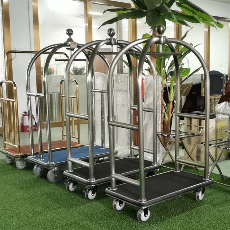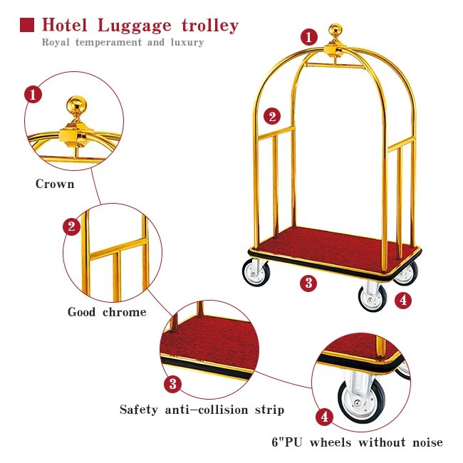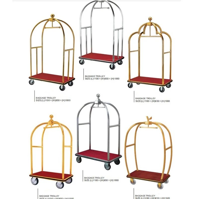 Stainless Steel Hotel Luxury Crown Foldable Bellboy Cart Rack Concierge Barrow Baggage Bellman Trolley Luggage Carts