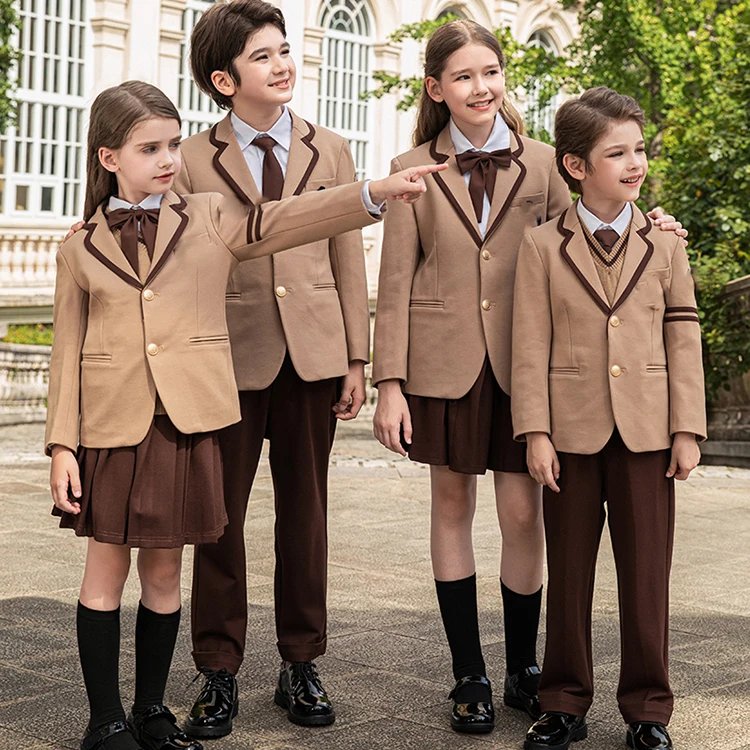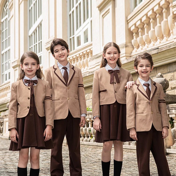 Toddlers School Uniforms Sets 100% Polyester Made Uniform With Coats OEM Service Factory Made School Uniforms Kids Girls & Boys