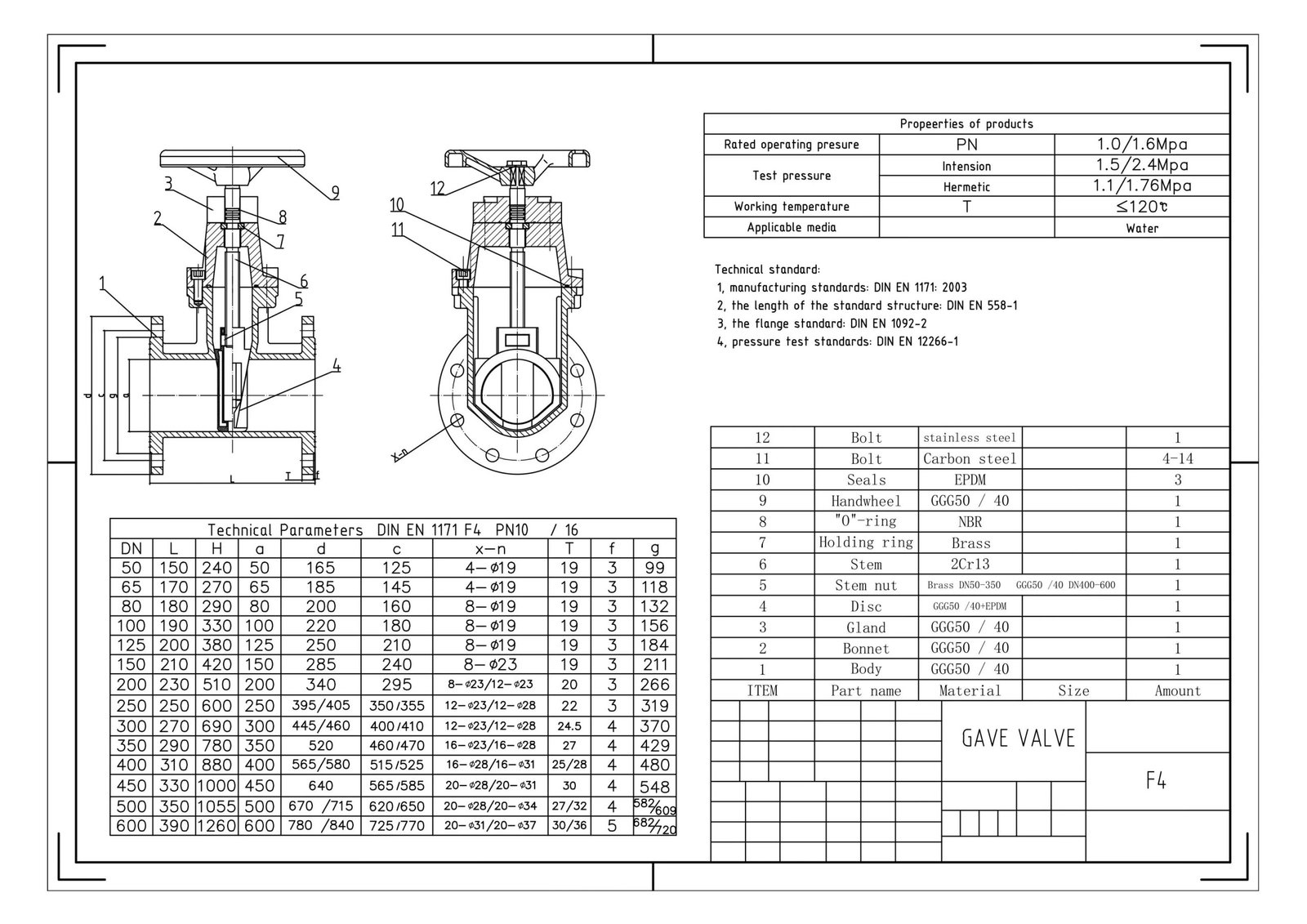 - Working pressure : PN10/PN16