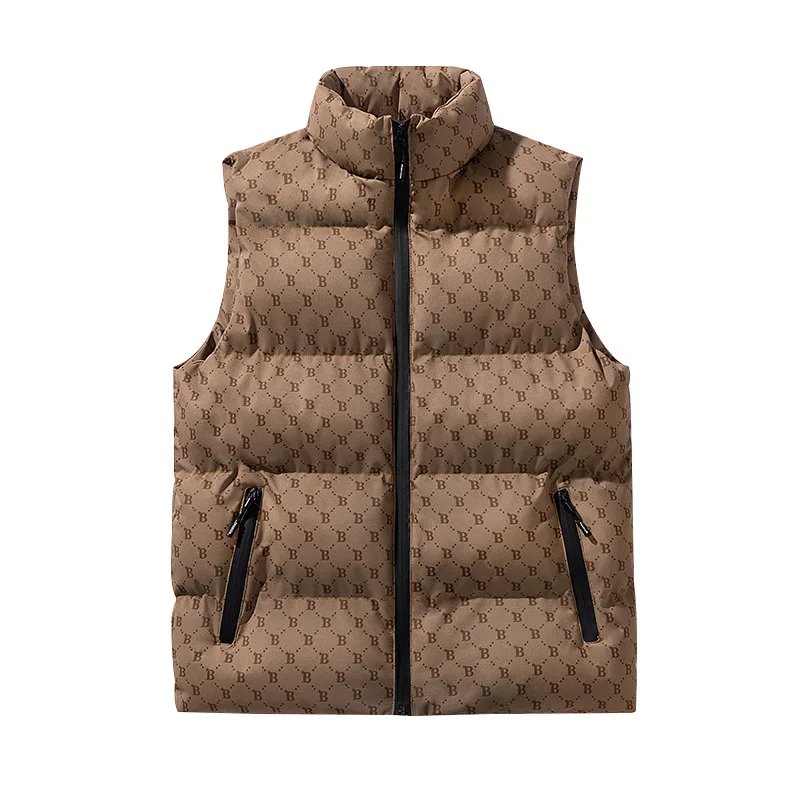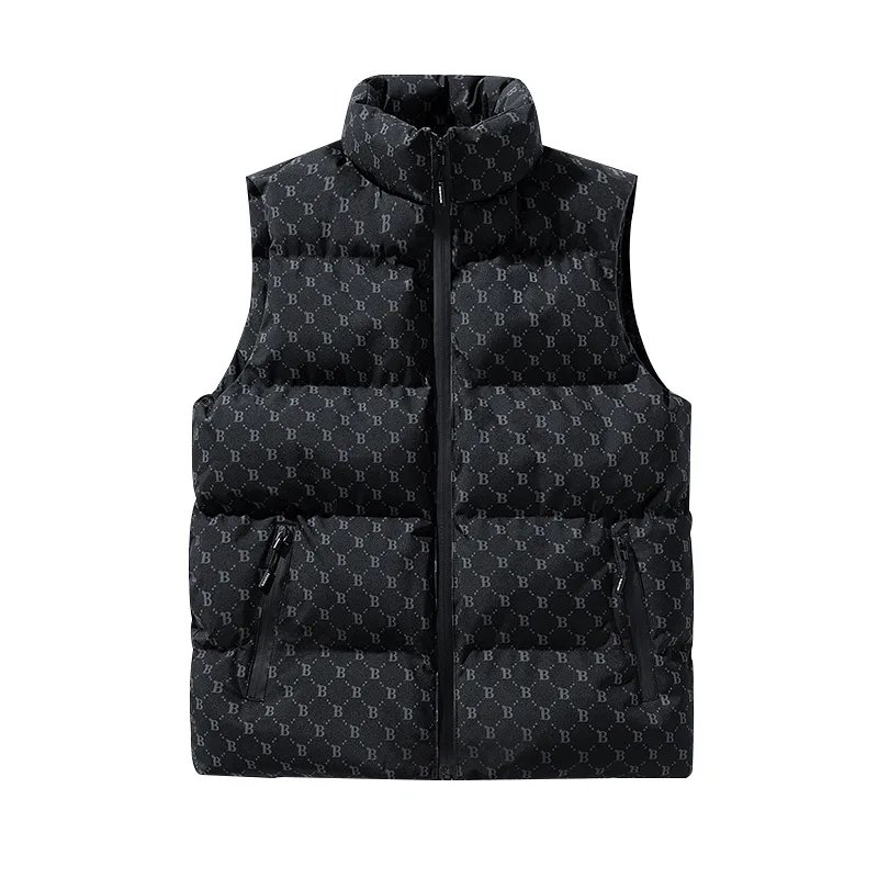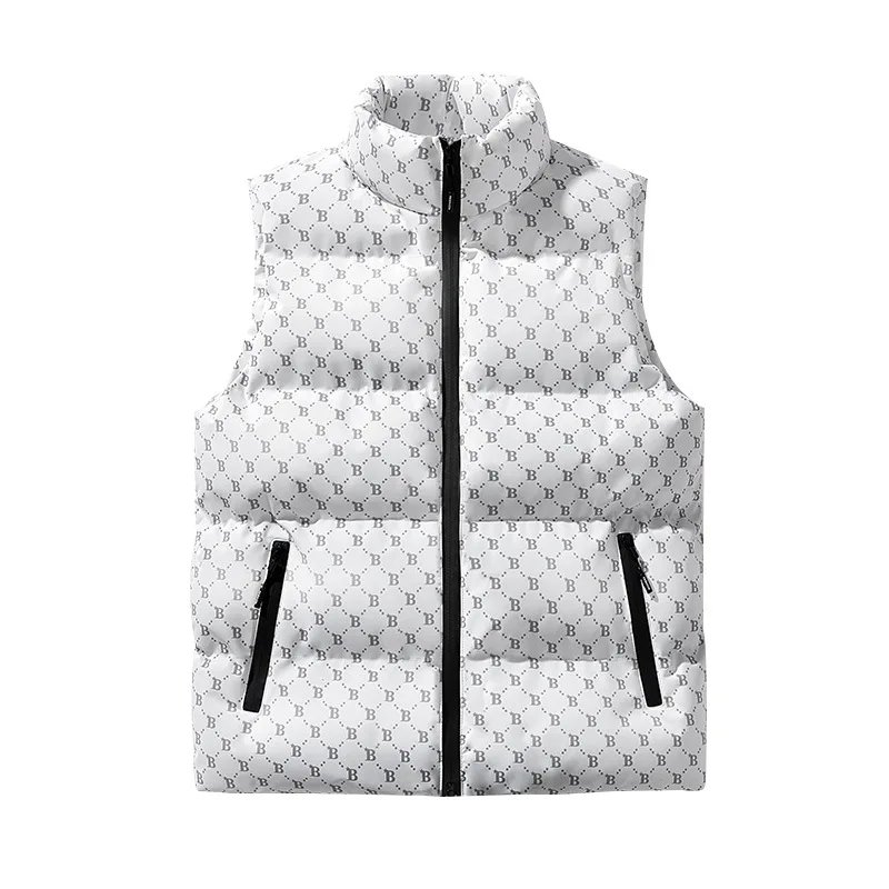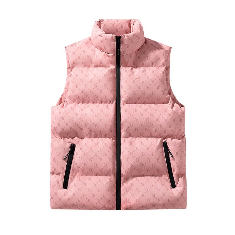Unisex B-Shaped Cotton Puffer Vest Winter Casual Sleeveless Jacket with Zipper Pockets XS Size New Design