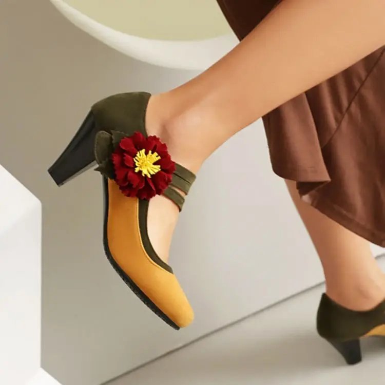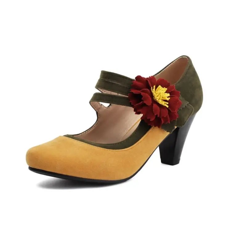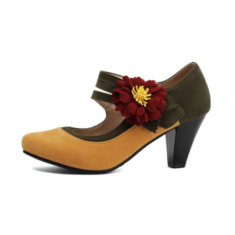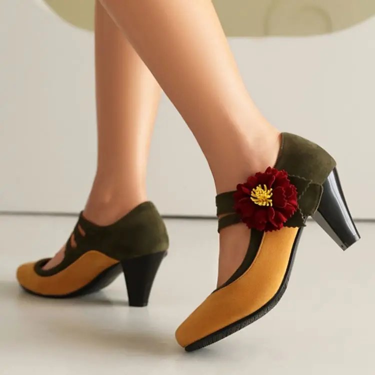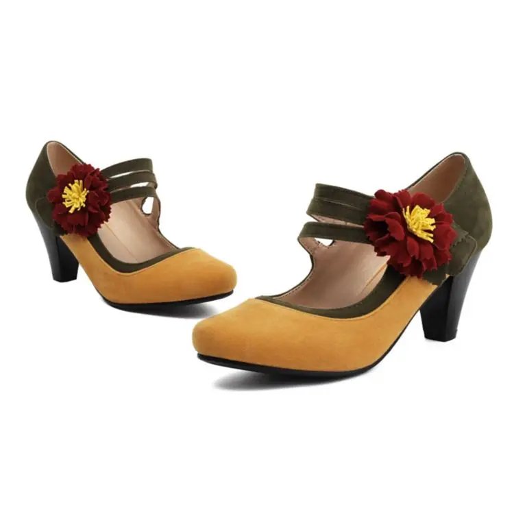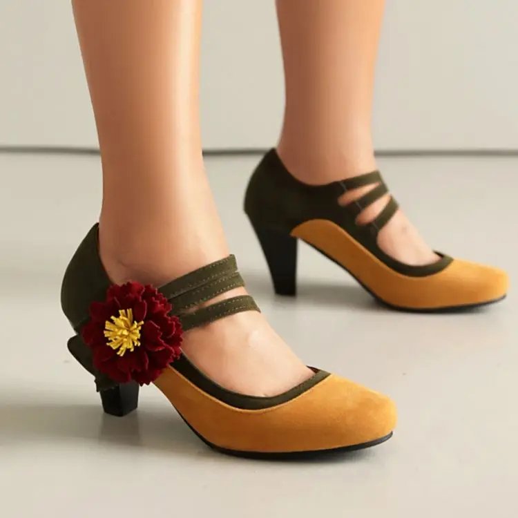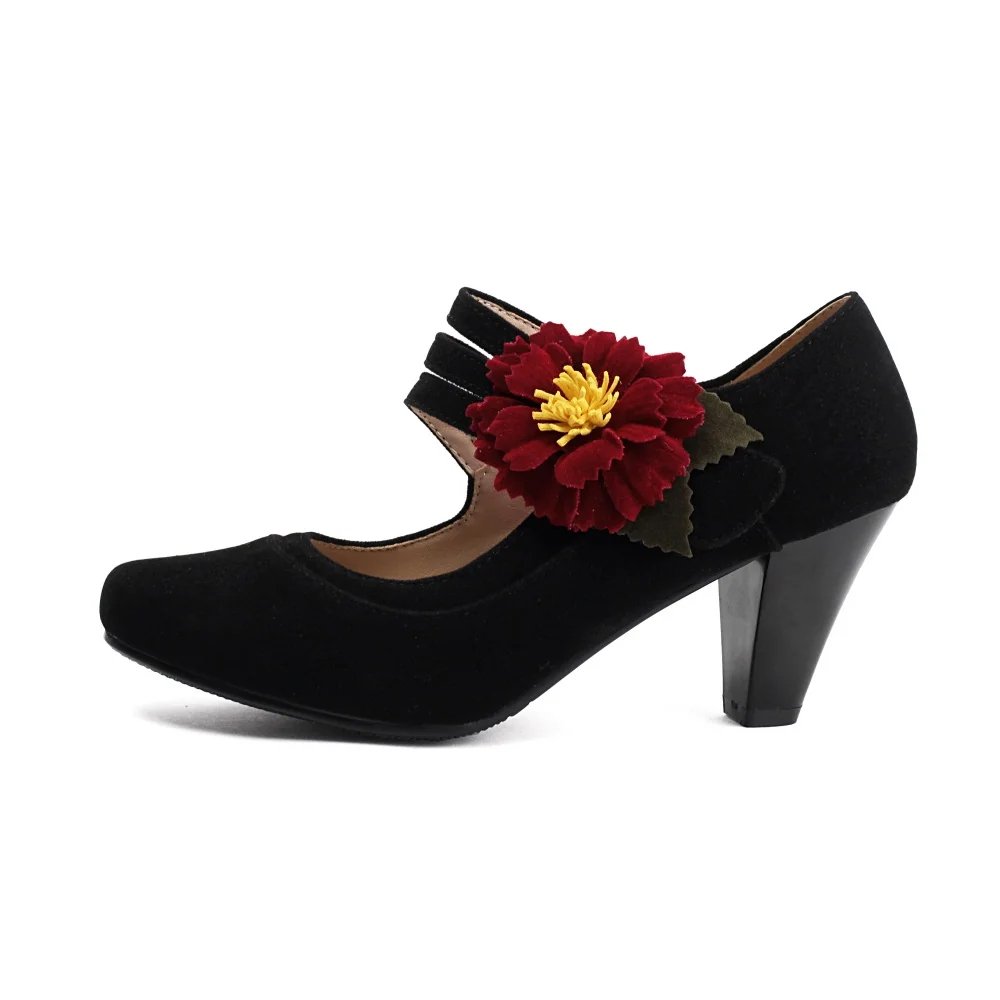Vintage Flower Ankle Strap Heels Gatsby 1920s Pumps Youth Ballroom Dance Party Heel Shoes for Women