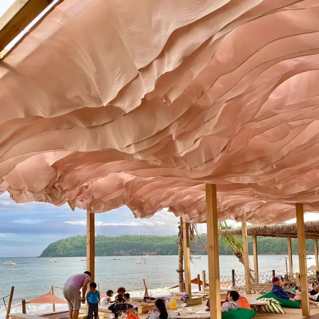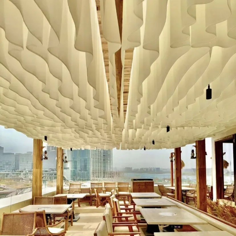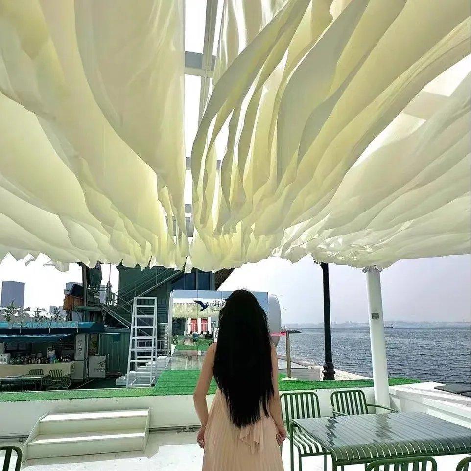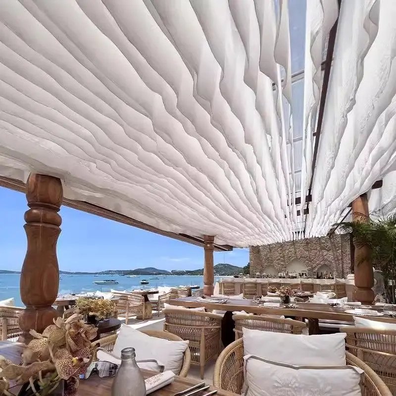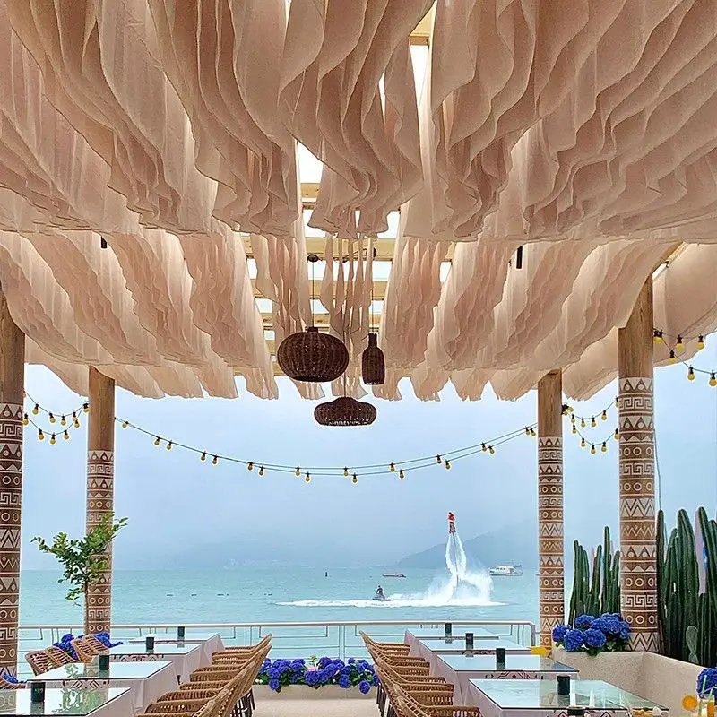 Wedding Wave Style Wind Moving Ceiling Drapery Curtain Ceiling Drapes Decoration Outdoor Courtyard for Hotel Restaurant