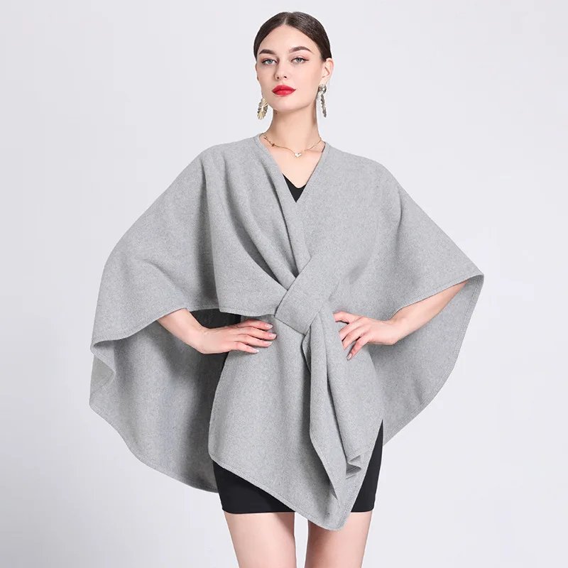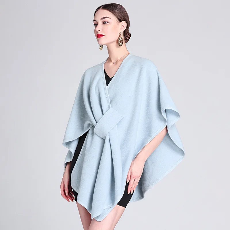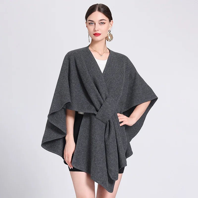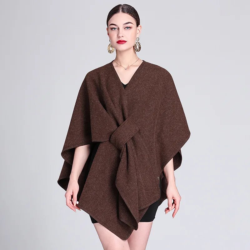 Wholesale 2026 Women's Elegant Solid Color Imitation Cashmere Poncho Shawl Free Size Autumn Winter Warm Ruana Traditional Shawls