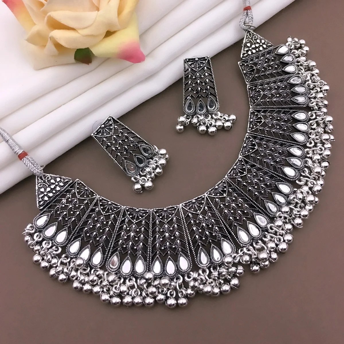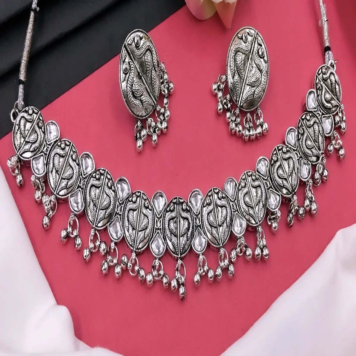 Wholesale Stylish Silver Necklace Set with Pearl Indian Rhodium Plated Navratri Festival Oxidised Jewelry Black for Women Girls₹927.15 Color Choose an optionSilver Size Choose an optionAdjustable Design Choose an optionOxidised NecklaceClear - Wholesale Stylish Silver Necklace Set with Pearl Indian Rhodium Plated Navratri Festival Oxidised Jewelry Black for Women Girls quantity + Add to basket SKU: 10000020209623 Category: Trishul INDO JEWAR Additional information Additional information Weight 1.650 kg Color Silver Size Adjustable Design Oxidised Necklace Related products Wholesale Handmade Brass Gold Rajwadi Kundan Openable Kada Bangle Indian Wedding Jewelry Antique Timeless Jewelry ₹2,148.15 Select options This product has multiple variants. The options may be chosen on the product page Indian Manufacturer's Traditional Wedding Engagement Party Wear Fine Gold Bangles Diamond Classic Kundan Design Women Gifts ₹832.15 Select options This product has multiple variants. The options may be chosen on the product page Indian Fashionable and Traditional Brass Bangles Women Wedding Bangles for Women and Girls ₹886.15 Select options This product has multiple variants. The options may be chosen on the product page Indian Fashionable and Traditional Brass Bangles Women Wedding Bangles for Women and Girls ₹1,036.15 Select options This product has multiple variants. The options may be chosen on the product page