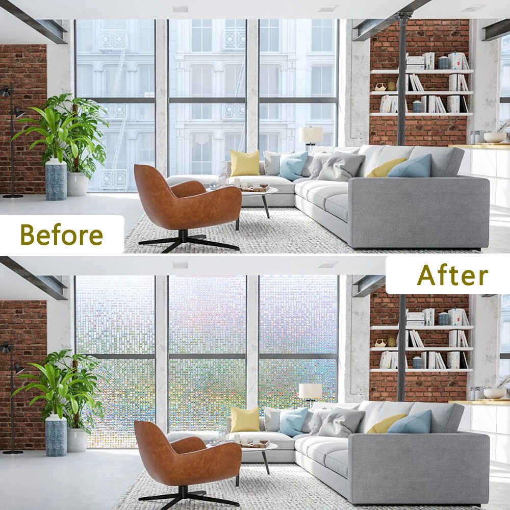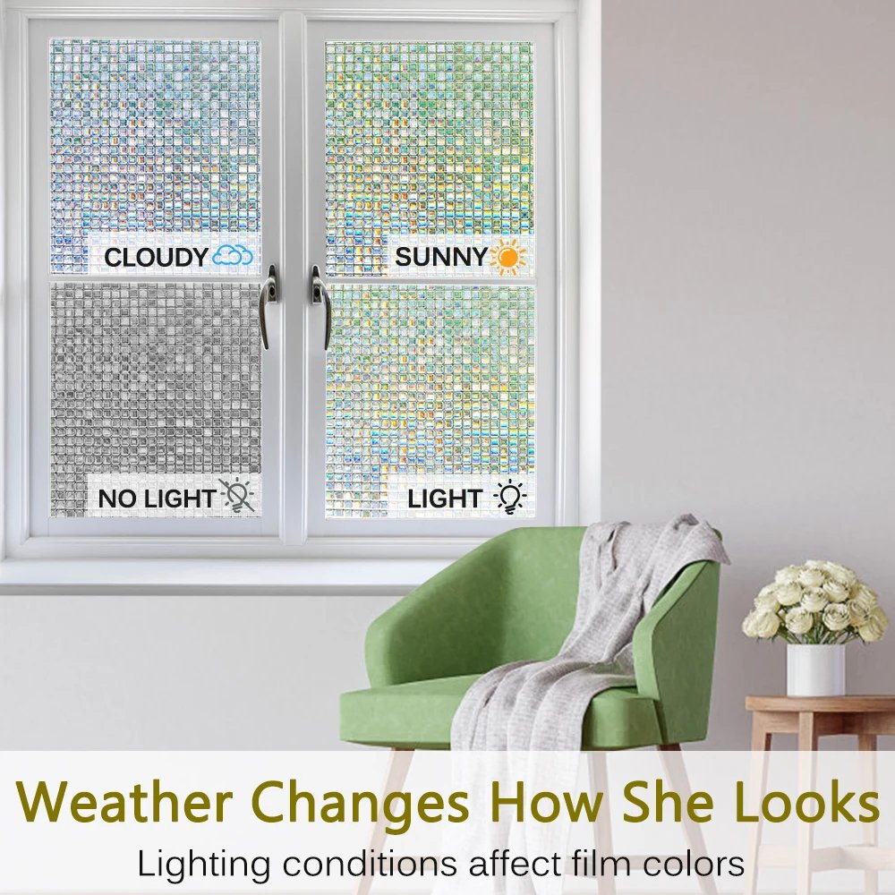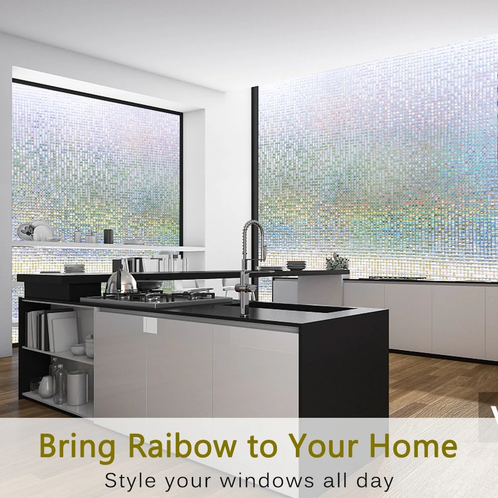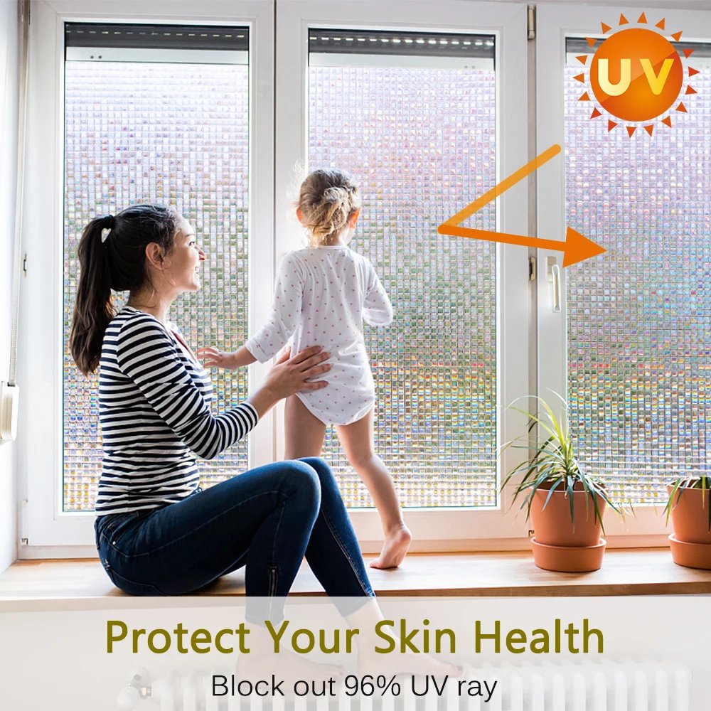 Window Privacy Film Stained Glass Window Film Mosaic Static Cling Window Vinyl Non-Adhesive UV Blocking for Home Office