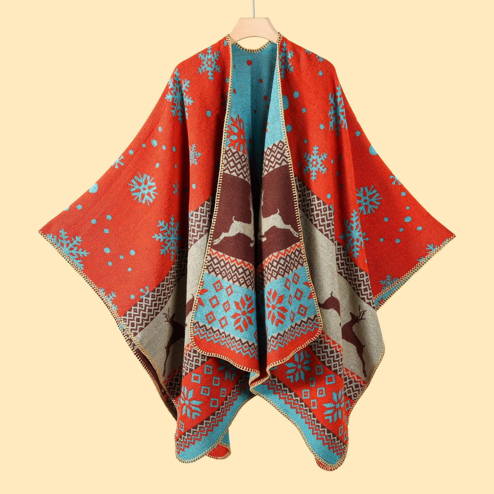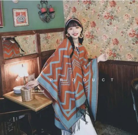 Women's Shawl Wrap Boho Vintage Shawl for Retro Style Bohemian Mother's Day Fringed Plush Soft Cashmere Shawl